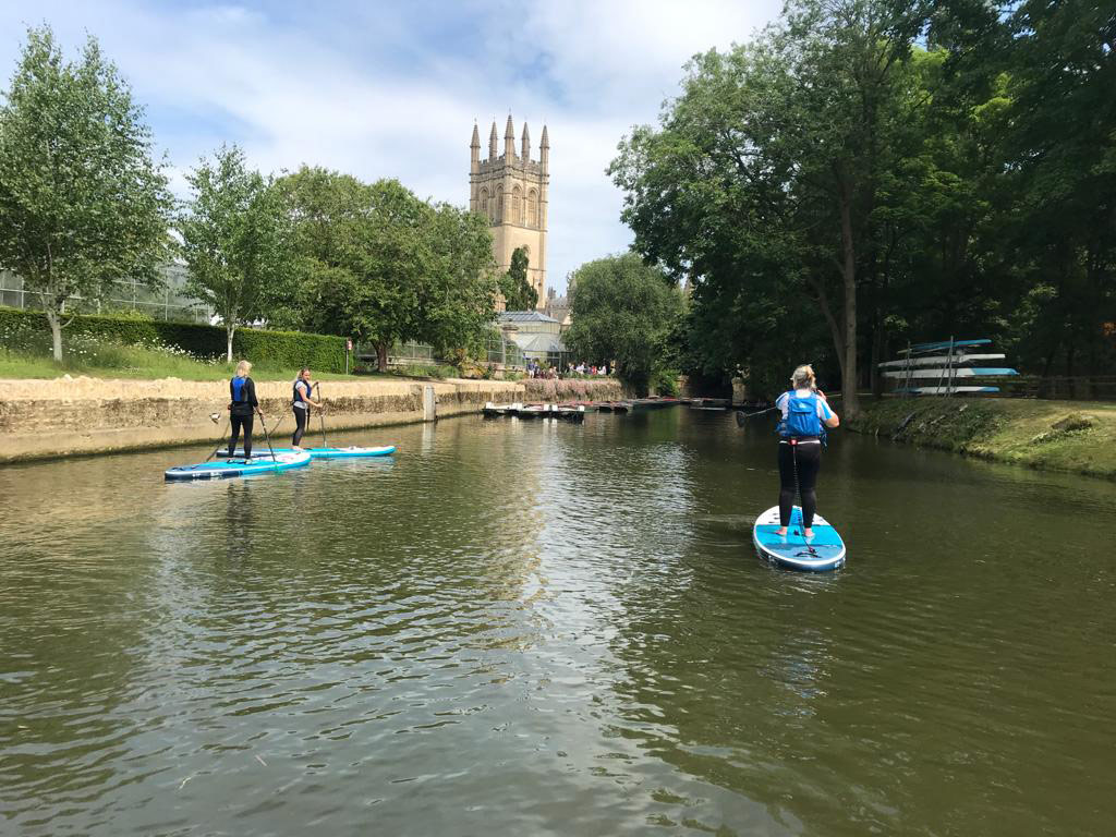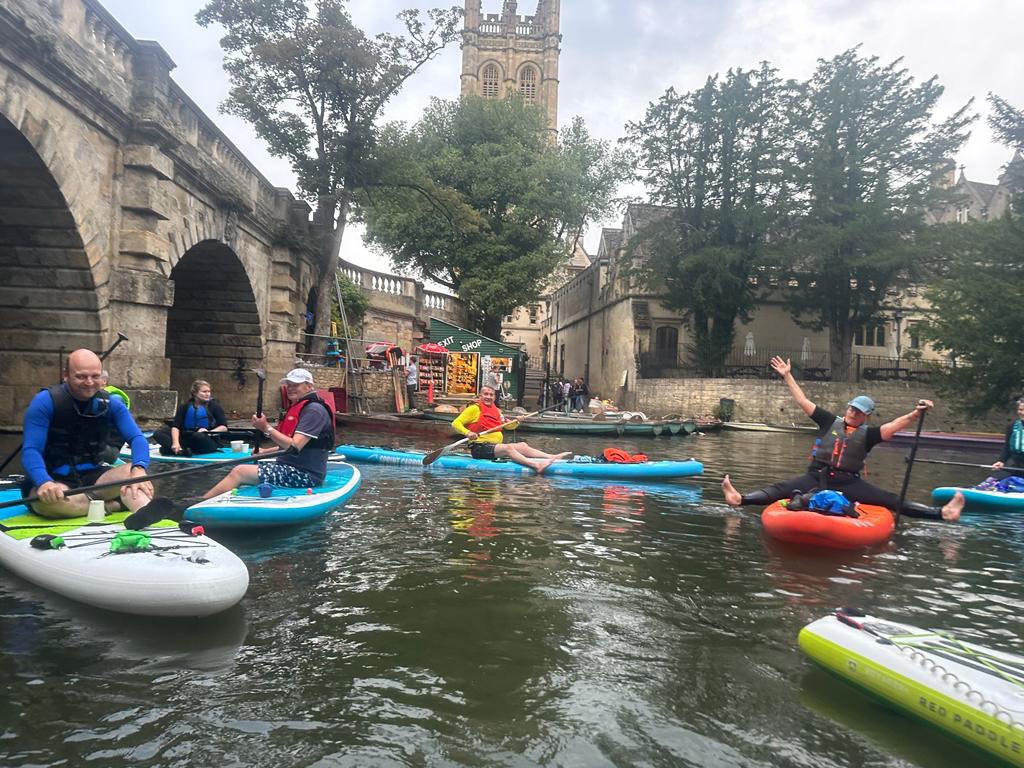 We’ll meet at one of Oxford’s most popular riverside pubs for briefing and instruction before venturing out onto the water, paddling down one of Oxford’s quietest backwaters to the next ‘watering hole’ allowing you time to reconvene with your party, enjoy a refreshment break and get your ‘land legs’ back! Once back ‘on-board’ we’ll paddle back up to our starting ‘pub point’ with the option of learning tricks & playing some ‘on-water’ games! If you wish to extend your party experience, the pub has a stunning riverside garden with an excellent menu